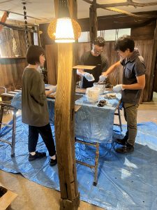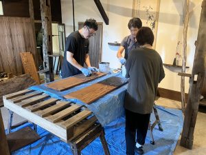 この日は大阪から足を運んでいただき、お施主様自ら床板7坪分に古色を施されました。