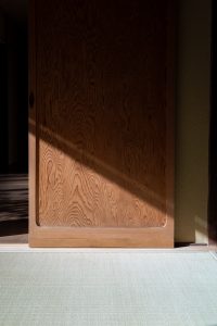 縁側へ続く仕切りの建具は、屋久杉の一枚板。